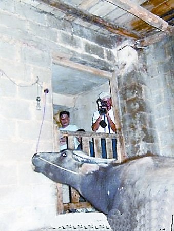记者拍下了这头母牛开灯的瞬间。 在南丹县乡下流传着这样一个故事:有一头水牛,它在夜晚饥渴的时候会自己开灯找水喝,吃饱喝足了又会自己将灯关掉。9月21日,记者见识了这头稀奇的牛。 9月21日中午,记者从南宁出发,一路辗转乘坐了6个多小时的汽车,于当晚9时许到达了“水牛会开关灯”的目的地——南丹县六寨乡后街。 牛的主人叫莫照光,是个中年男子。他刚刚带记者穿过自家的厅堂时,突然前方一间屋子的灯亮了起来。莫照光调侃着说,亮灯的地方就是那头水牛住的“单间”,估计是水牛听到有客人来访,所以打开电灯表示欢迎。 记者走进“单间”一看,牛圈里有一头膘肥体壮、毛色发亮的水牛,旁边一头憨态可掬的小水牛正在抬头好奇张望。莫照光说,这头大水牛就是最近屡屡上镜会开关灯的水牛,小水牛是它的崽。 为了求证这头牛的神奇,在征得牛主人的同意后,记者关掉了牛圈里的灯,然后在牛圈里耐心等待。刚开始里面一片漆黑,但过了3分钟后,眼睛逐渐适应了黑暗,可以模糊地看见牛的轮廓。 大约20分钟后,大水牛慢悠悠地靠近电灯开关拉线,扬起头,“啪”的一声,电灯亮了,记者看见牛嘴叼着电灯开关拉线的下端。只见它晃着脑袋到处找水喝的样子,但是主人并没有给它准备水,把灯打开后水牛见没有水喝,又把电灯关了。 当晚10时10分左右,水牛再次开灯找水,莫照光于是拎来一桶拌有少量玉米粉的水进来,水牛开始“牛饮”,一会儿就将桶里的水喝了个精光。喝完水后,这头水牛探身上前,用嘴叼住开关线,又将电灯关了。 当晚10时30分,记者走出牛圈,向莫照光了解有关“水牛会开关灯”的幕后故事。 莫照光说,这头母牛从小是他看着养大的,已经有整整10个年头了。母牛4岁开始产崽,此后一年一胎。5年前开始,莫照光的老婆晚上起床上厕所时,经常发现夜里牛圈的电灯亮着,她随手把灯关了。第二天一起床,她发现牛圈的电灯还是亮着,于是责怪莫照光晚上给牛喂水喂料不关灯,但是莫照光却一口否认。 到底发生了什么事呢?莫照光和妻子为电灯的事发生了争执。后来,一肚子困惑的莫照光干脆蹲守在牛圈里,这才发现是水牛饥渴找水时自己开的灯。莫照光说,经过一段时间的观察,他发现这头水牛开灯的时长要比关灯的时长多得多。每当饥渴时,它就开灯很长一段时间等待主人喂食,如果主人不理睬,它又会自己关灯,但没隔多久,它又开灯继续等待,如此反复。 发现家里有了一头会开关灯的神奇水牛,莫照光也跟着神气起来,逢人就讲,但是听者都说他“吹牛”,没有一个人信。后来同村的一名男子和他打赌:如果牛开关灯一次就给莫照光10元钱,但如果莫照光讲的不实,就得倒给该男子10元钱。一天晚上,在几名好奇者的见证下,水牛真的开关灯,当晚恰恰开关灯5次,帮莫照光赢了50元钱。 此次打赌,莫照光家的水牛会开关灯的消息一下子就像长了翅膀一样,十里八村的人都来看稀奇,还有好事者打电话给当地新闻媒体,但没有一个记者相信是真的,直到今年9月这个消息才被中央电视台关注。