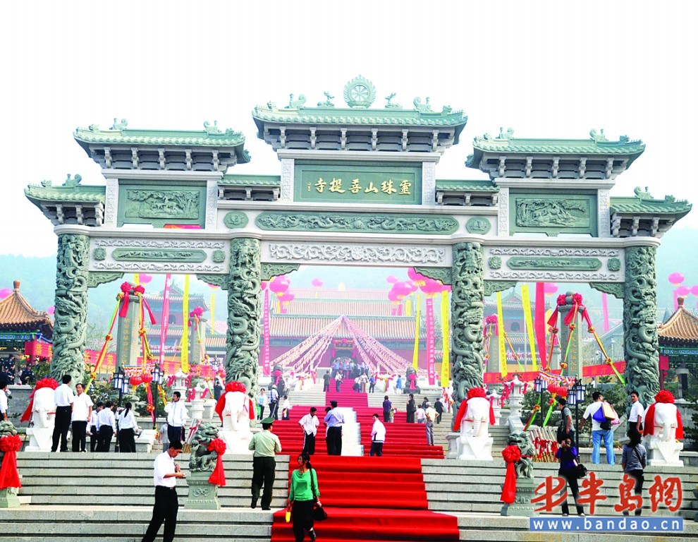 9月28日上午,开发区举行了灵珠山菩提寺落成、全堂佛像开光暨明哲方丈升座庆典法会,海内外百余名高僧应邀参加庆典法会。青岛湛山寺方丈明哲长老兼任灵珠山菩提寺方丈。