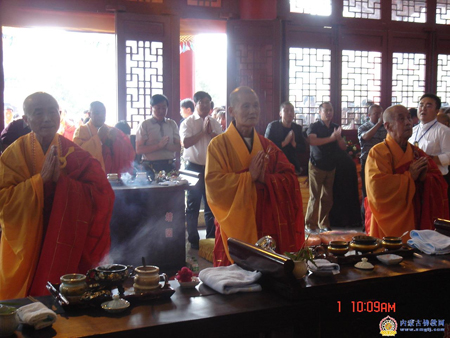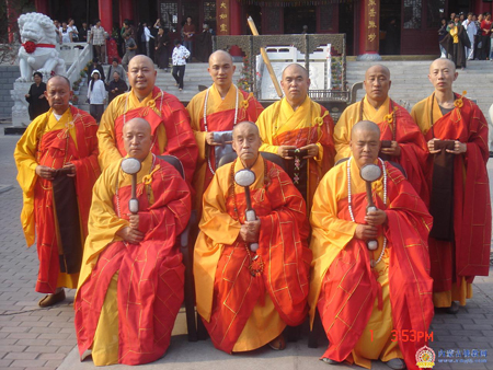 1日下午5时,六位法子喜接天台宗法脉,由妙行法师、净妙寺住持昌永法师任教授羯摩师,圆山长老对法子们作了重要开示。