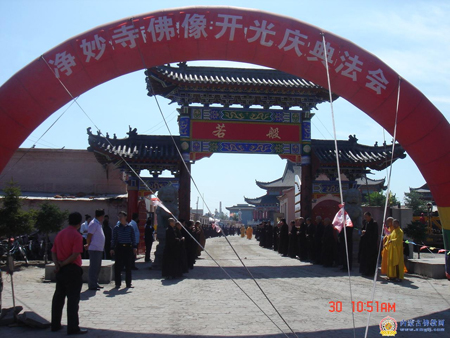 2009年9月1日上午9时,内蒙古通辽市净妙寺隆重举行了“大雄宝殿暨天王殿开光法会”。辽宁省佛教协会名誉会长、营口楞严寺法主圆山长老,吉林省佛教协会会长、长春般若寺方丈成刚长老,安徽二祖寺方丈、少林寺禅堂首座、云居山真如寺首座绍云长老,十方讲堂圣宇法师,内蒙古锡林浩特市菩提净院相庵法师等诸山长老参加了法会并共同为佛像主法开光。通辽市统战部、通辽市宗教局王局长等相关领导出席了庆典。四方信众10000余人参加。