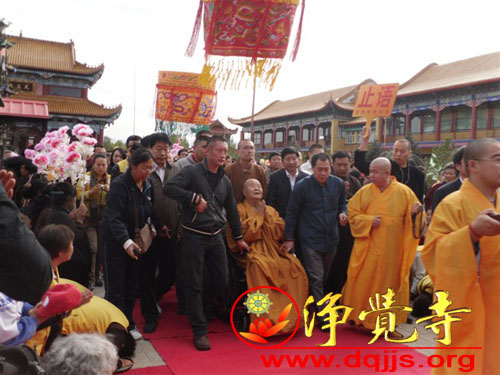 2009年9月26日,大庆净觉寺邀请台湾佛光山开山宗长星云法师为数千名信徒开示佛法。净觉寺方丈本英法师率两序大众鸣钟鼓迎接。信徒从山门口一路列队,大家口中称念佛号,双手合掌,秩序井然地迎接星云法师的到来。