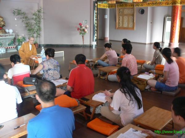 中国佛网讯 2009年9月6日9时,重庆佛学院居士大专班2009—2010学年(第二学年)正式开学,近三十名青年佛子继续学业。上午,由大专班班主任来圣法师总结第一学年学员们的学习、考试以及出勤情况、介绍了新学年大专班所要学习的课程。来圣法师赞叹学员们以往一年的精进学修,鼓励大家再接再励,有始有终的圆满完成学业。接着,来圣法师教授学员们学唱佛赞《炉香赞》及打击佛器的方法,学员们饶有兴致地边打边唱,收获颇丰。
