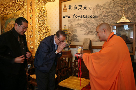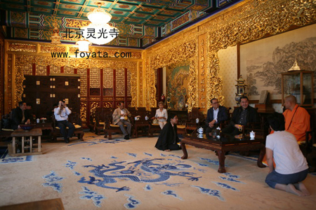 2009年9月3日上午10:30分,泰国前外长率泰国大使馆代表团一行10人到北京灵光寺参访。灵光寺方丈常藏法师在迎客厅盛情接待了泰国代表团一行,双方进行了亲切座谈,并互赠纪念品。