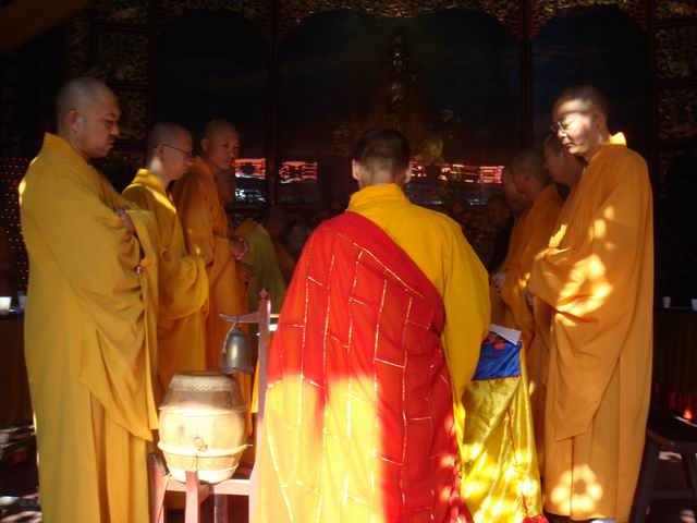 (中国佛网讯)2009年09月01日上午8点 在华岩寺弘法楼正式啓建为期三天盂兰盆报恩法会,法会由华岩寺知客德心法师主法,并带领百余名僧众及信徒诵盂兰盆经、地藏经、做三时系念殊胜佛事,并放圆满瑜伽焰口,无量功德,共在此间!法会的主旨是继承与发扬慎终追远、孝亲报恩之美德、百善孝为先,孝能感动地和天。为人子女,饮水要思源,圆满生命,尽孝无愧意。