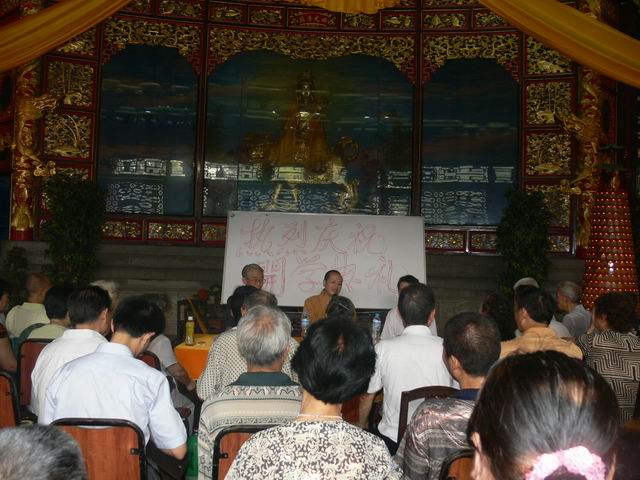 中国佛网讯 2009年9月6日,重庆华岩英才传习社第四学年第八学期开学典礼在弘法楼举行。传习社社长道坚法师、传习社常务副社长萧朗淳老师、秘书长李正思老师、儿童班袁可老师及众多传习社的新老学员参加了典礼。会上,道坚法师向各位新老学员分发了,介绍中华传统文化(佛、道、儒)的书籍——《中华节庆》。