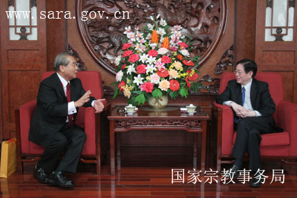 郭俊次先生转达了台湾中国佛教会前理事长悟明长老、理事长净良长老和善导寺住持了中长老的问候,就进一步加强两岸佛教界交流提出了建议。王作安局长强调,两岸佛教界之间的交流是两岸人民交流的重要组成部分,国家宗教局将一如既往地支持大陆佛教界与台湾佛教界开展友好交往,以增进两岸人民之间的了解和理解。