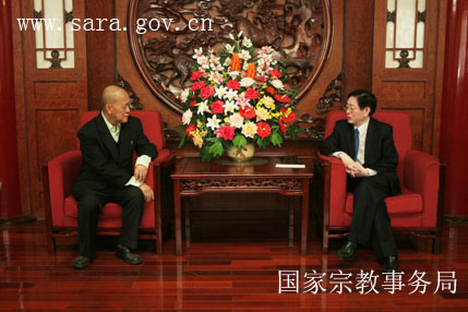 2009年9月29日下午,国家宗教事务局王作安局长在该局会见了来京参加国庆观礼的新加坡佛教居士林林长李木源。
