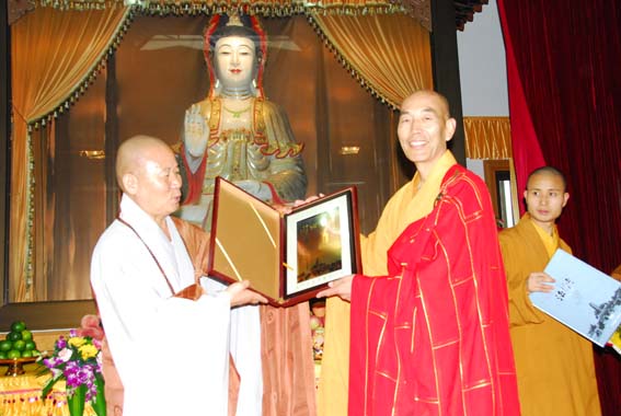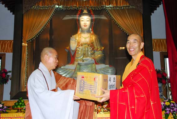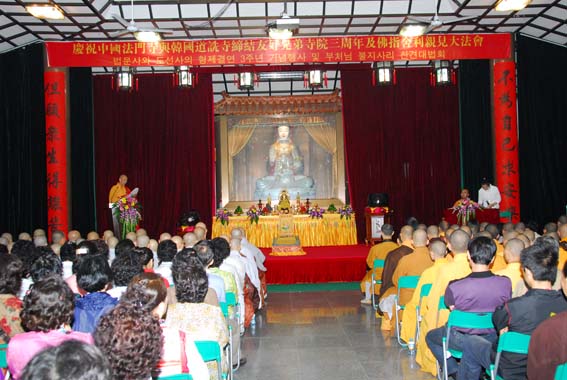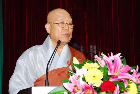 此次道诜寺僧团前来瞻礼法门寺佛指舍利,既是我们两寺落实“友好兄弟寺院”合作关系的一项重要内容,也是中韩两国佛教界友好交往的一件喜事!我们亲临圣地瞻礼佛指,亦如亲见佛陀,沐浴慈光,感受佛恩,得佛加持。我们相信,通过这次瞻礼盛会,将会进一步加深两个兄弟寺院、中韩两国佛教界以及两国人民的感情,一定会给中韩两国佛教界、两国人民带来更多的福祉!在这里,我以无限虔敬之心,祈求佛陀慈光加被,风调雨顺,世界和平!祈愿佛陀的慈悲光明普照一切众生,恭祝中韩两国人民幸福吉祥! 恭祝中韩两国人民和佛教界的友谊地久天长!恭祝我们两个兄弟寺院的友好合作不断发展,结出丰硕的果实。让我们携手并肩,共同努力,通过两国佛教界之间更加稳固黄金纽带,为亚洲乃至世界的和平作出贡献!”