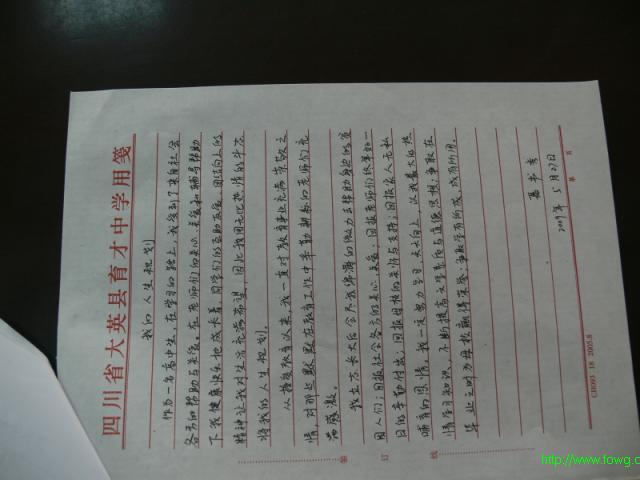 会议中每名学生都讲述了自己的家庭状况和未来理想,每位困难家庭中的孩子虽然背景不同,但求学的决心的相同的,更有学子讲至困境处不禁哽咽。有学子表示自己的理想是成为一名医生,可以回到家乡治病救人;有的学子的理想是考取复旦大学,努力学习,回报社会。四川省大英县教育局副局长任常荣鼓励学子们朝着自己的理想努力! 会议结束全体人员合影留念并相约明年高考后大家再相聚。由重庆市华岩文教基金会资助的3万册《弟子规》也一并交四川省大英县教育局,由教育局统一发放到师生手中。