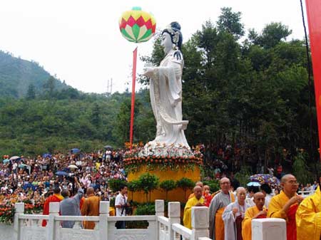 中韩高僧一道为“慈悲情怀”杨柳观音圣像举行了开光大典。