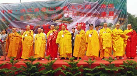 在中韩禅文化节期间,中韩佛教界代表共同为嵩云山佛教文化园——唐园奠基培土。同时落成的由缅甸汉白玉雕刻而成的玉观音圣像高5.98,将成为嵩云山又一标志性景点。