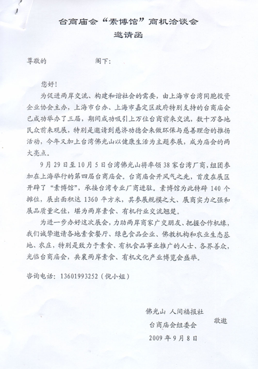 上海将举行第四届台商庙会“素博馆”商机洽谈会