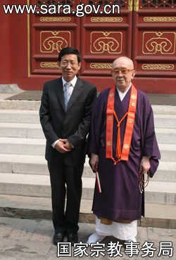 蒋坚永副局长(左)与小野(土冢)几澄长老(右)合影