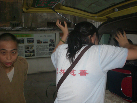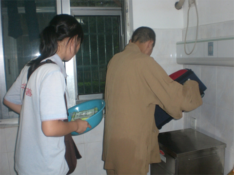 师父在三院下车后合十留念
