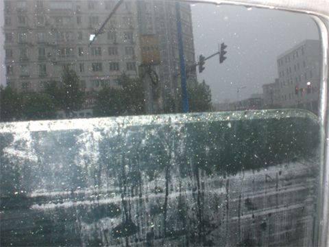 透过车窗,可以看到雨下的更大了。雨刮不停的“嘶啦、嘶啦”,还是刮不及玻璃上的水,视线模糊,车行的很慢。路上很多地段有深积水。