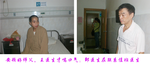 2009年8月份,偶尔得知东林慈善功德会实施大病救助并免费为出家人医治,就在网上发了求助信息。没多久,即得到了东林慈善功德会门诊部邹医生的电话信息,经多方沟通联系,约定了他今天来住院。东林慈善功德会已经给院方交了2000元,病房床位早就安排好,在肝二科17床。