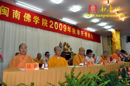 2009年9月6日,闽南佛学院2009年秋季开学典礼在福建厦门南普陀寺讲堂隆重举行。中国佛教协会副会长、闽南佛学院院长圣辉法师,福建省厦门市统战部副部长、厦门市民宗局书记陈建德,厦门市民宗局蔡永华副局长,厦门市佛教协会会长、南普陀寺方丈则悟法师,厦门市佛协常务副会长、观音寺住持定恒法师,日本大谷大学河内昭圆教授携夫人以及闽南佛学院各部门领导法师和全体师生参加了开学典礼。闽南佛学院常务副院长界象法师主持典礼。