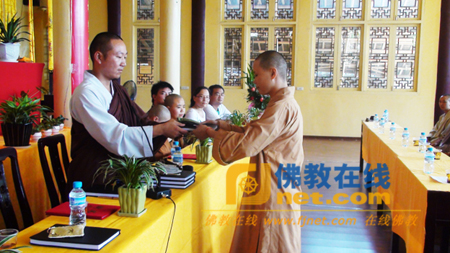 典礼上,能显法师还为各位任课法师、老师颁发了的聘任证书。