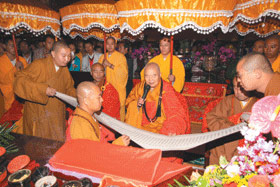 落成典礼后,在众多贵宾及千余名信众的观礼下,大师亲自为道极法师传授祖衣、念珠、法卷等信物,并在大师宣读法卷及叮咛咐嘱后,道极法师成为临济宗第四十九代传人,也是继南京栖霞山方丈隆相和尚等人之后,为星云大师在大陆的多位法子之一。整个仪式历时一个多小时,隆重而庄严。