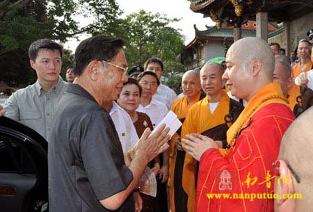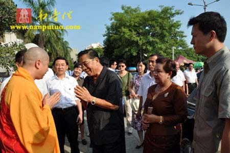 2009年9月12日下午4时,老挝人民革命党中央委员会总书记、国家主席朱马利·赛雅贡携夫人到福建省厦门市南普陀寺参观。