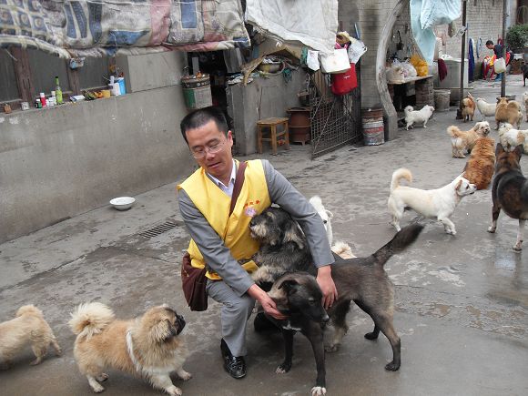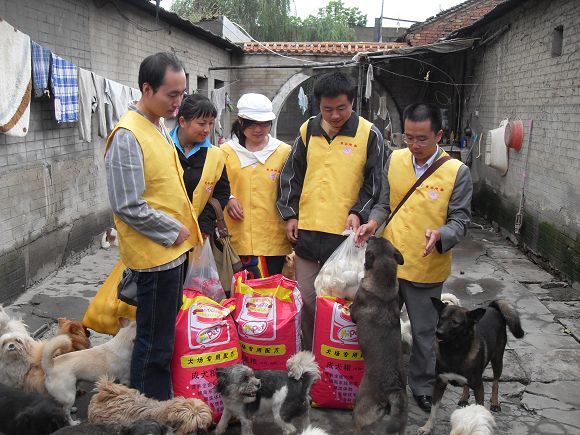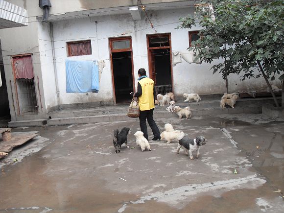 狗粮馒头火腿肠,看着这些丰盛的礼物狗狗们兴奋了一个劲的上来跟我们亲热,这让第一次来的小杨和我有些不太适应这样的热情。