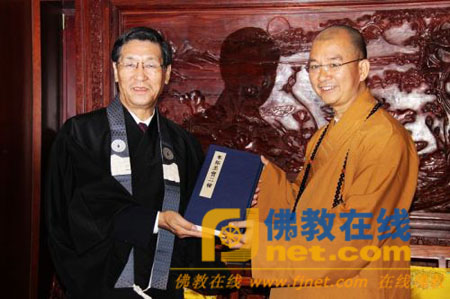 2009年10月9日晚,日本大谷大学校长木村宣彰一行4人,在中国佛教协会张琳副秘书长和中国佛教协会国际部日本课李贺敏课长的陪同下,到龙泉寺参访交流,受到龙泉寺方丈学诚法师的热情接待。
