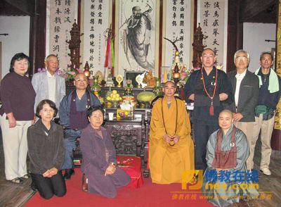 青山文规一行对诚信法师的接见表示感谢。最后,宾主双方互赠礼品,并在大鉴堂合影留恋。