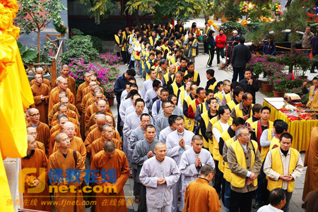 2009年10月27日上午,北京市龙泉寺四众弟子到灵光寺朝拜佛牙舍利。龙泉寺悟光法师、禅兴法师带领该寺僧团甲班、丙班和丁班的僧众及居士150余人朝拜了佛牙舍利。