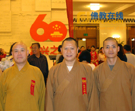 2009年9月24日晚,北京人民大会堂洋溢着节日的喜庆气氛,为庆祝中华人民共和国成立60周年而创排的大型音乐舞蹈史诗《复兴之路》为首都各界人士举行首场演出。中国佛教协会教务部副主任清远法师,北京广济寺方丈演觉法师、监院道藏法师,中国佛教文化研究所研究员园慈法师等佛教界人士观看了演出。