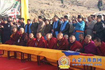 中国佛教协会副会长图布丹仁波切、内蒙古佛教协会会长贾拉森仁波切等数十名僧人在东升庙后山的平台上诵经祈福,加持了建造大佛之地。