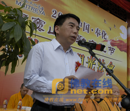 岳林禅寺监院净仁法师致欢迎辞。奉化市人民政府副市长何剑波,奉化市佛教协会会长、雪窦寺方丈怡藏法师出席祈福法会,并分别代表市政府部门和参加法会的诸山长老讲话。