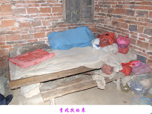 那五年里,他独自住在村小组公用仓库,靠救济粮生存。他用砖头垒一个土灶,,趴在地下烧火,用吊锅烧饭。因为手脚不听使唤,他烧火做一顿饭很困难。做得好,一天可以吃两顿,不好时一天只吃一顿。从没有用过热水。因长期营养不良,他患上了贫血,身体极度虚弱,曾经七天没吃过一顿饭。威胁到了生命。无可奈何,他哥哥把他接到家里,截止到2009年,他哥嫂已经照顾了他11年。