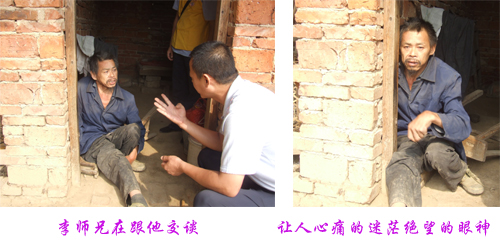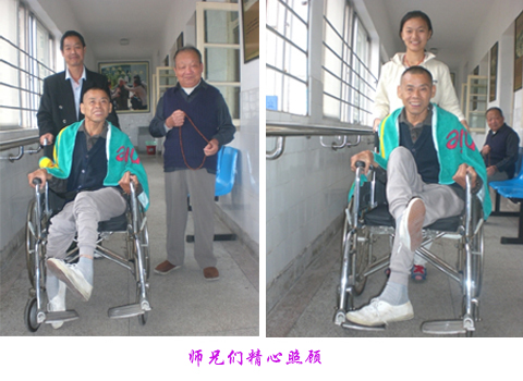 李良国师兄专程前往做了后续调查,把他接到了安养院。李师兄说,见到他主动握住他的手时,他激动的满脸通红(感言:那一双在地上爬行50年的手,现在被人相握! )。背他上车时,他嗓音都发颤了。入住时,黄良辉师兄给他洗了热水澡。他大呼“好舒服啊”。