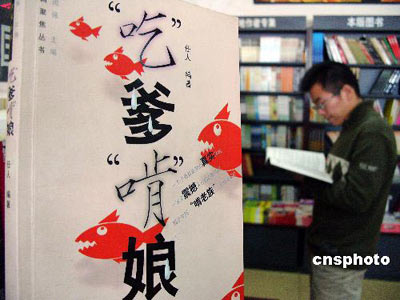 读者在湖北宜昌新华书店里阅读《吃爹啃娘》一书。据悉,该书通过一个个曲折离奇的真实案例,揭示了中国啃老族的生存现状。中新社发刘君凤 摄