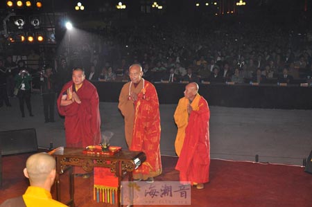 开幕仪式结束后与会大众共同观看了由法师、居士、广佑寺佛乐团同台演出的“禅颂和谐”大型文艺晚会。据悉讲经说法大会于10月16日上午正式进行。(图文:虚实居士)