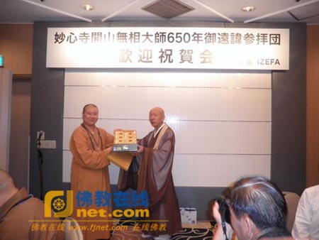 觉醒法师代表中国佛教协会向则竹秀南长老赠送礼品