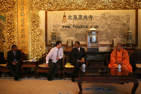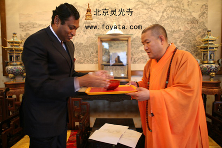 2009年9月30日中午,斯里兰卡驻华大使阿穆努珈玛率使馆文化参赞参访北京市灵光寺,受到了灵光寺方丈常藏法师的热情接待。