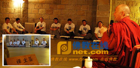 三盛地产集团的主管干部一行人在法师的带领下共修普门品洒净,随后,禅修课程正式开始,对于刚接触禅修的学员们,显月法师仔细地教导每一个步骤,细心地提醒每个人注意自己的姿势。