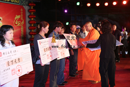 晚会前,灵光寺方丈常藏法师首先发表致辞。随后区委常委、副区长付生柱为灵光寺颁发荣誉证书,同时也肯定了灵光寺一直以来本着“人间佛教,慈善人间”的理念资助困难人群的善举。晚会上领导们还为资助者颁发荣誉证书,为受助者发放救助金,受助代表也发自内心地感恩灵光寺和社会各界所给予的关爱。