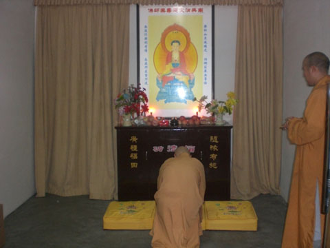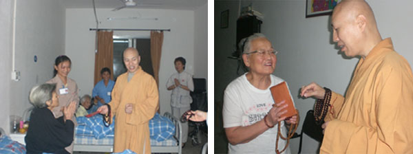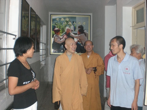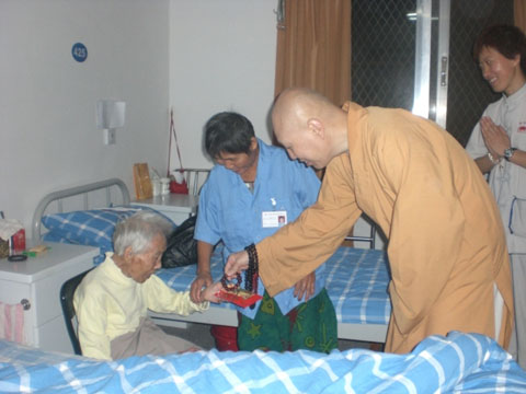 上大下安法师在2009年10月3日农历八月十五晚6:30分光临东林慈善门诊部,在镜义法师的陪同下,视察了安养院,充分肯定了东林慈善功德会所取得的成绩。并亲切看望在院老人,发放红包和佛珠,让老人喜沐法师慈德。