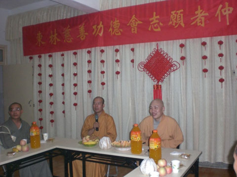 志愿者一定要发心广大,一定要发长远心。慈善是要靠大家的信心来支撑。我们要在巩固大家的信心方面做得(更)细致一点。随着慈善事业做得越来越好 功德主越来越有信心 对慈善的支持也会越来越大。要有责任感和使命感,树立良好的东林慈善形象,要知道我们每个人都关系到东林寺、东林慈善的形象。我们通过这个平台行菩萨行,通过慈善,让更多的众生接触到佛法。希望此项佛教慈善事业日益壮大。