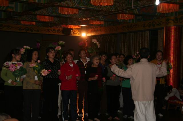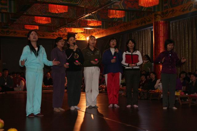 昨晚,道坚法师,首愚法师参加了法会结束后的茶话晚会。道坚法师和首愚法师分别作了开示,四众弟子经过七天的如法精进共修,皆获大饶益,欢喜无限。会上,四众弟子表演了唱歌,跳舞,书法展示等节目,充满欢声笑语。法会结束后,首愚法师和道坚法师与参加法会的四众弟子合影留念,众皆欢喜,依依惜别。