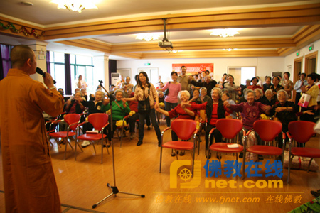 下午,玉佛寺觉群慈爱功德会与上海市老年基金会普陀区分会、上海佰瑞福为老健康服务中心联合举办了重阳敬老活动,为普陀区福利院的老人送去精美的水果糕点及御寒的毛毯,并献上了一台老年朋友喜闻乐见的精彩节目,使福利院的老人得到了物质上的资助和精神上的享受,深受老人欢迎。