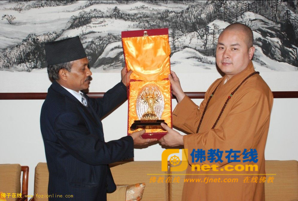 2009年10月31日,尼泊尔驻华大使Mr.Tanka Prasad Karki大使一行参访陕西西安大兴善寺,受到大兴善寺住持宽旭法师的热情接待。