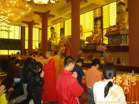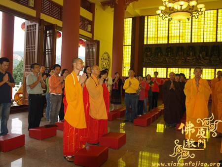 2009年11月11日下午4时,国际佛光会中华总会会长心定法师带领信众,到厦门市灵鹫山石室禅院参访,受到石室禅院住持忠明法师及四众弟子的热情欢迎。