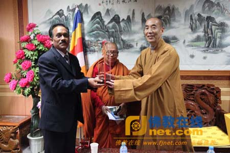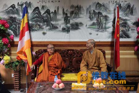 智超法师等带领着阿士瓦古史长老及大使一行参观了寺院,并在大雄宝殿上香礼佛,随后宾客双方在贵宾接待室进行了愉快的交流。