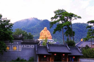 在奉化市溪口镇西北8公里处,有一座国家级风景名胜区雪窦山,山高600多米,山上乳峰呈窦,水如乳从窦流出,故名雪窦山。半山上的雪窦寺,规模甚为庞大,有五进大殿,且苍松古柏虬劲、银杏楠木挺立,自然环境十分幽雅。因为这里是布袋和尚出家的道场,主殿内供奉的佛像就是弥勒菩萨而不是释迦牟尼。雪窦寺始建于晋代,至唐宋时期极为兴盛。宋代真宗皇帝赐扁额“雪窦资圣禅寺”;宋仁宗曾梦游此山,因故取名为“应梦名山”,立御碑亭于寺前。蒋介石也曾为山门手书“四明第一山”。寺后的一座小院曾经是关押张学良将军的临时幽禁处,张将军经常来往于寺中,并于大殿之后曾亲手种植过四株楠木,现在尚存两株。雪窦寺在南宋时被称为“天下禅宗十刹之一”,1984年,雪窦山被定为仅次于峨眉、九华、普陀、五台的我国第五大佛教名山。