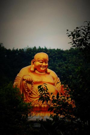 汉传佛教寺院的三门之内首先迎接香客的就是那位笑口常开、大肚敞怀的弥勒菩萨,看见他就好象让人忘记了烦恼和忧愁一样,因而被称为“皆大欢喜”。