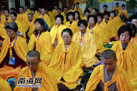 2009年11月23日,记者从海南省三亚市民族宗教事务局获悉,第二届南山禅文化研习班在南山佛教文化苑举行,主办方邀请台湾十方禅林方丈首愚法师到场进行为期七天的讲经说禅。来自全国各地的僧侣和信众近百人参加了此次活动。