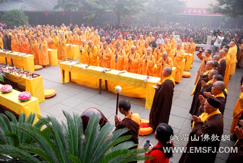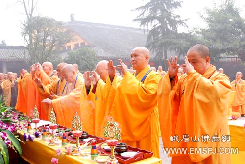 开幕式后,四川省佛教界的百余位法师与来自台湾的30余位法师和居士还在什邡罗汉寺共同举行了“和平祈福法会”。